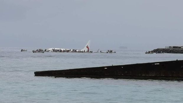 Pesawat Boeing 737-800 tersebut menghantam laguna yang mengelilingi pulau kecil itu pada 09.30 pagi waktu setempat.