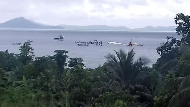 Seharusnya pesawat itu mendarat di landasan Bandara Chuuk Airport di Weno, Mikronesia, namun mengalami overshoot dan jatuh ke perairan.