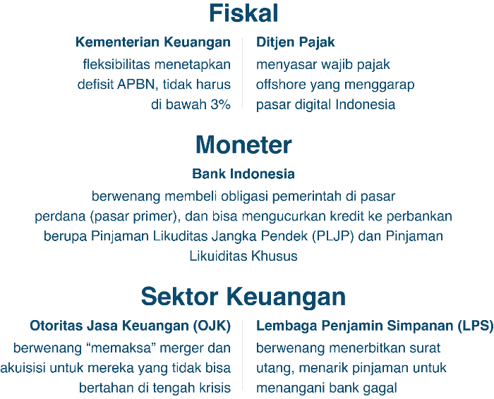 Otoritas fiskal dan moneter bahu membahu mengatasi krisis COVID-19.